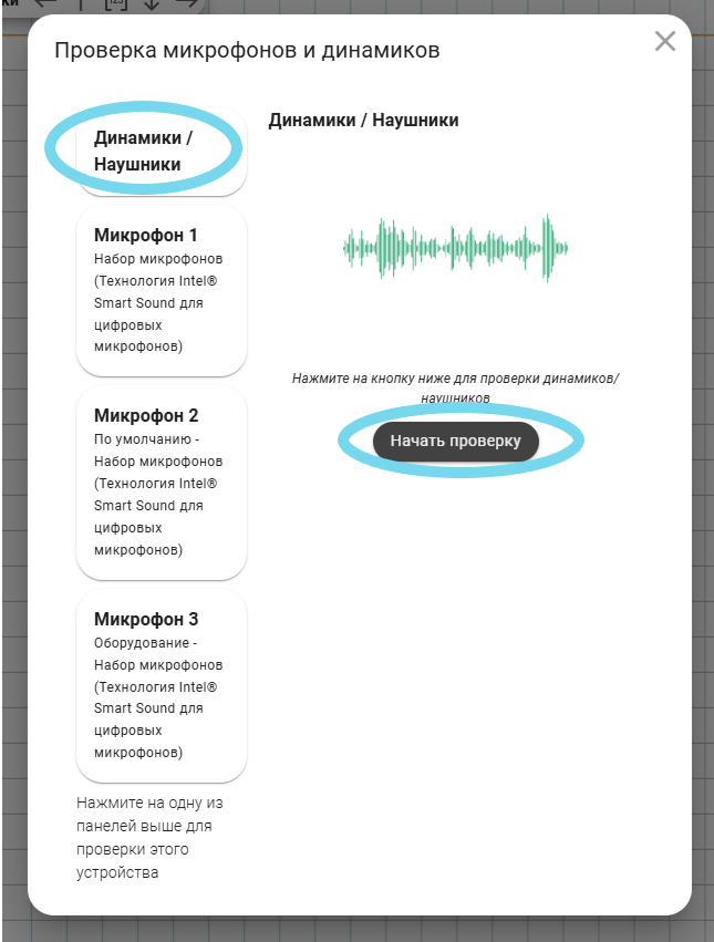 Если у вас или у ученика есть проблемы со звуком, необходимо проверить ваши устройства ввода/вывода звука. Проверять обязательно в том же браузере, в котором вы проводите урок!