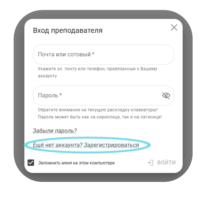 Для проведения уроков на платформе преподавателям (и только преподавателям) требуется регистрация.