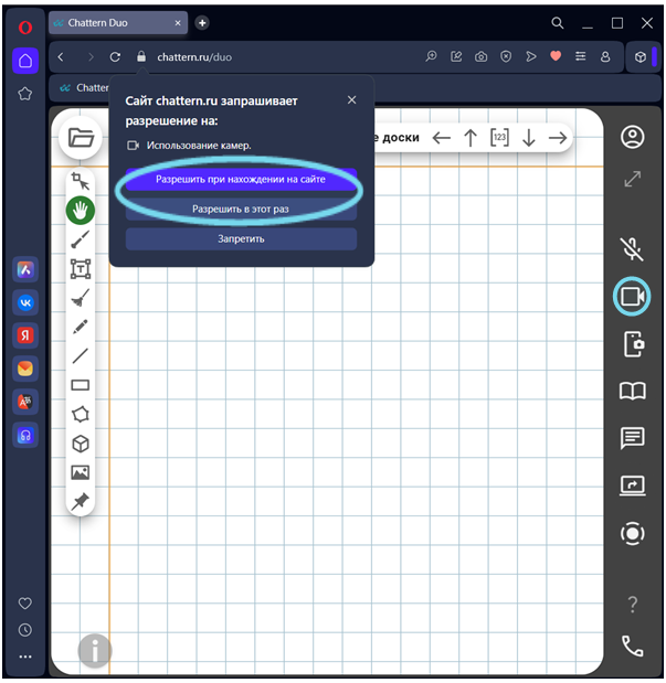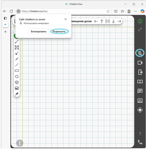 Когда вы или ваши ученики пользуетесь Чаттерн впервые, сайту chattern.ru необходимо предоставить разрешения на использование микрофона и видеокамеры.