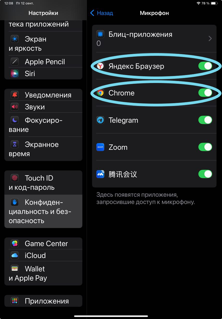 Зайдите в Настройки – Конфиденциальность и безопасность – Микрофон и разрешите вашему браузеру использовать микрофон и/или камеру.