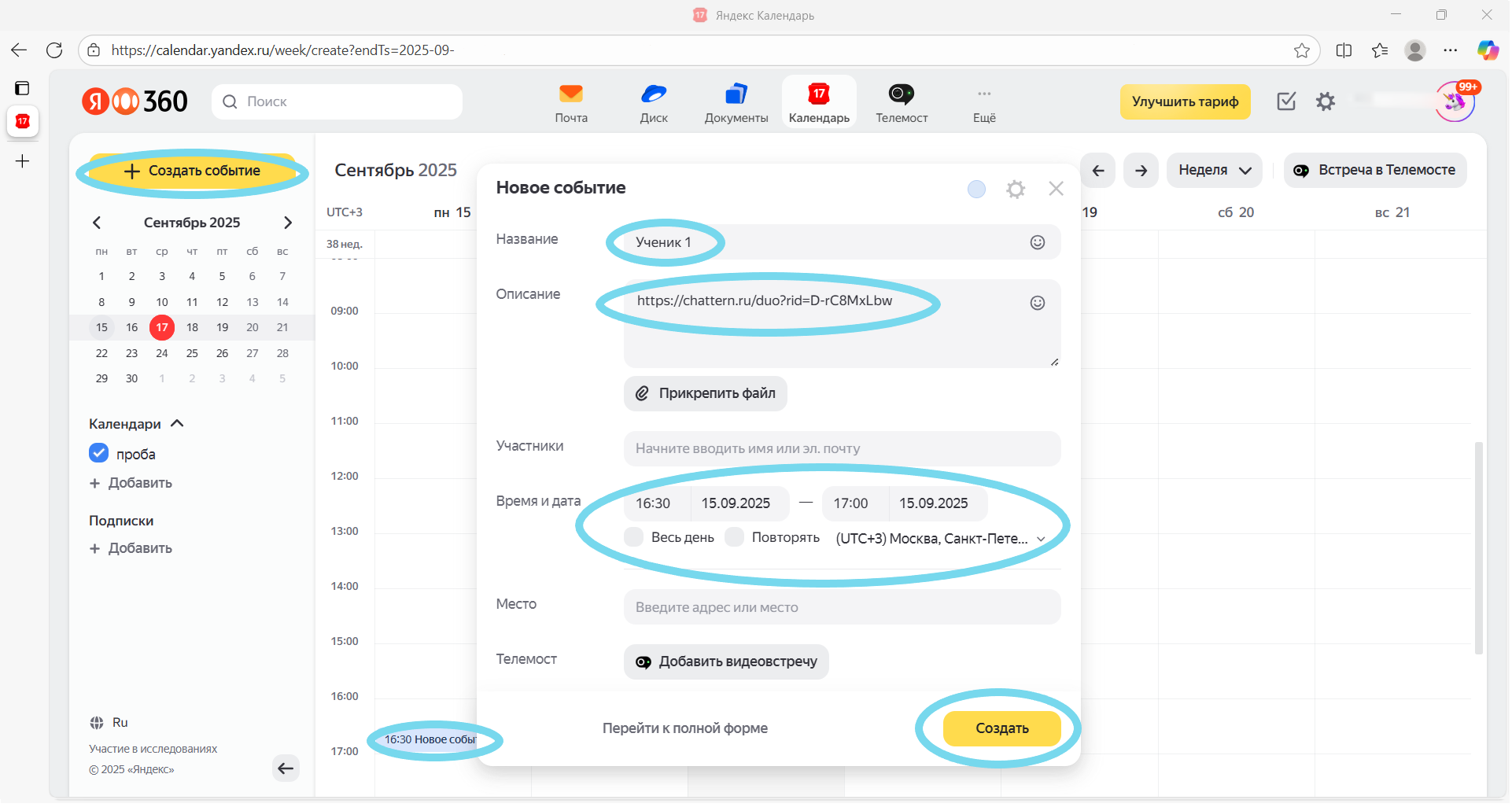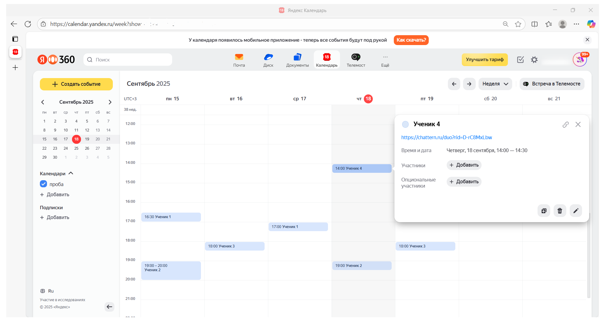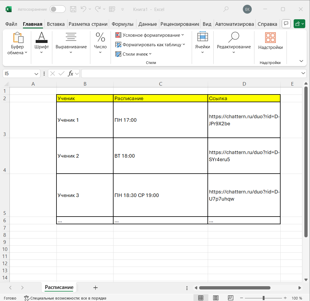 Многие учителя ведут своё расписание в онлайн-календарях, что позволяет иметь доступ к расписанию круглосуточно. К каждому уроку или ученику можно прикрепить соответствующую ссылку на сессию — так все ссылки будут под рукой и связаны с конкретным временем.
