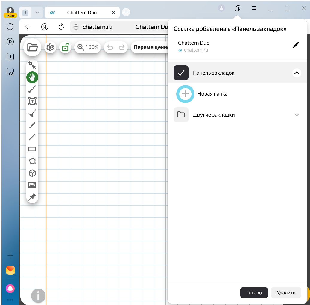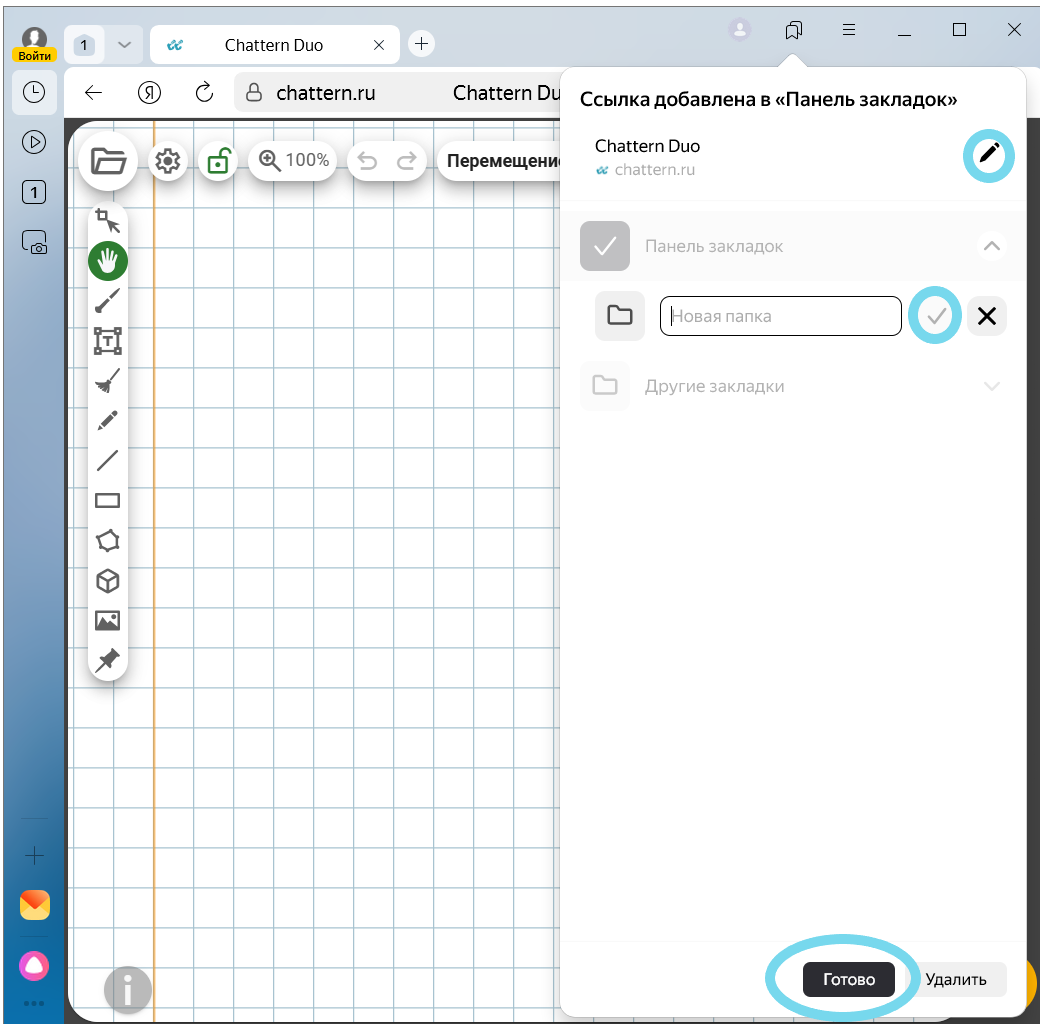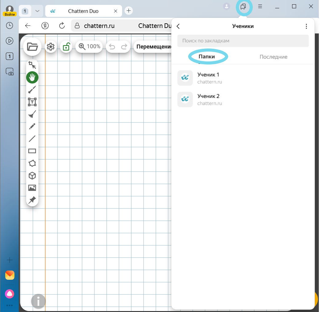 В любом браузере можно создать отдельную папку для закладок, например, с названием «Chattern». Добавляйте в эту папку закладки со ссылками на сессии и называйте каждую закладку именем ученика. Это позволит быстро открывать нужную ссылку без долгого поиска. Помимо создания папок, в некоторых браузерах можно добавлять теги к закладкам (например, в Firefox), что облегчает поиск и классификацию ссылок.