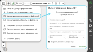 Чтобы удобно пользоваться рабочими листами, тетрадями и другими материалами на доске, можно импортировать их на доску из PDF. Импорт страниц из PDF так же позволяет выбрать только нужные страницы документа, который вы загружаете на доску.