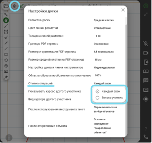 Учитель может выбрать, будет каждый сам отменять свои действия или только учитель.