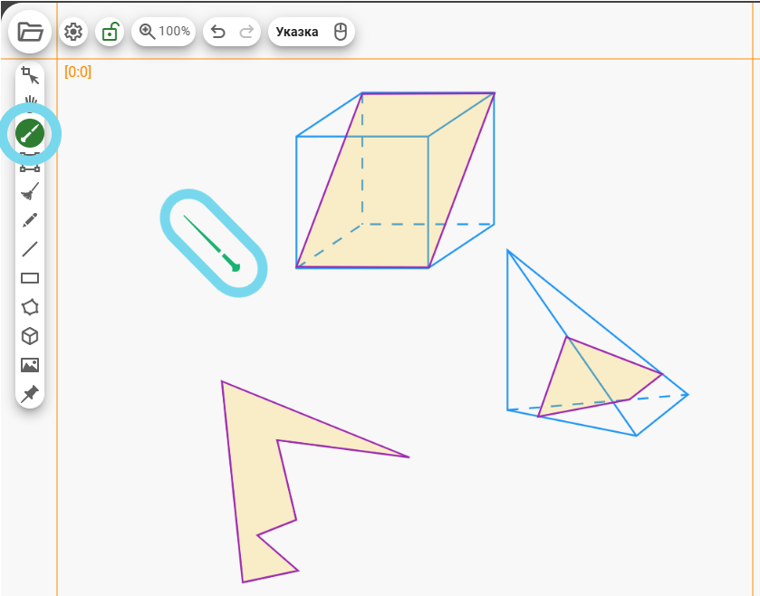 Инструмент указка доступен обоим пользователям. Если преподаватель не желает, чтобы ученик переносил его фокус доски, то он может запретить ученику использование указки через настройки блокировки доски.