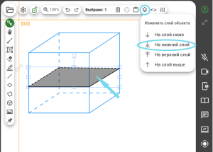В некоторых случаях требуется изменить слой объекта: поместить его поверх остальных или спрятать за другими объектами. На примере ниже плоскость сечения должна находиться под видимыми гранями фигуры. Для этого её необходимо перенести на нижний слой, как указано на рисунках ниже.