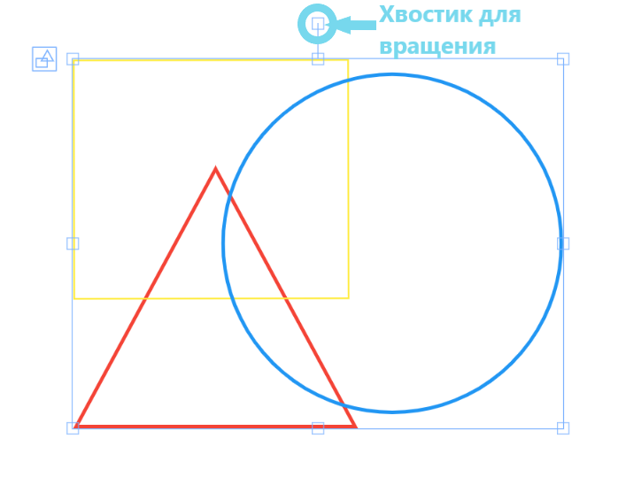Вращение осуществляется за хвостик рамки, в которую вписан объект.